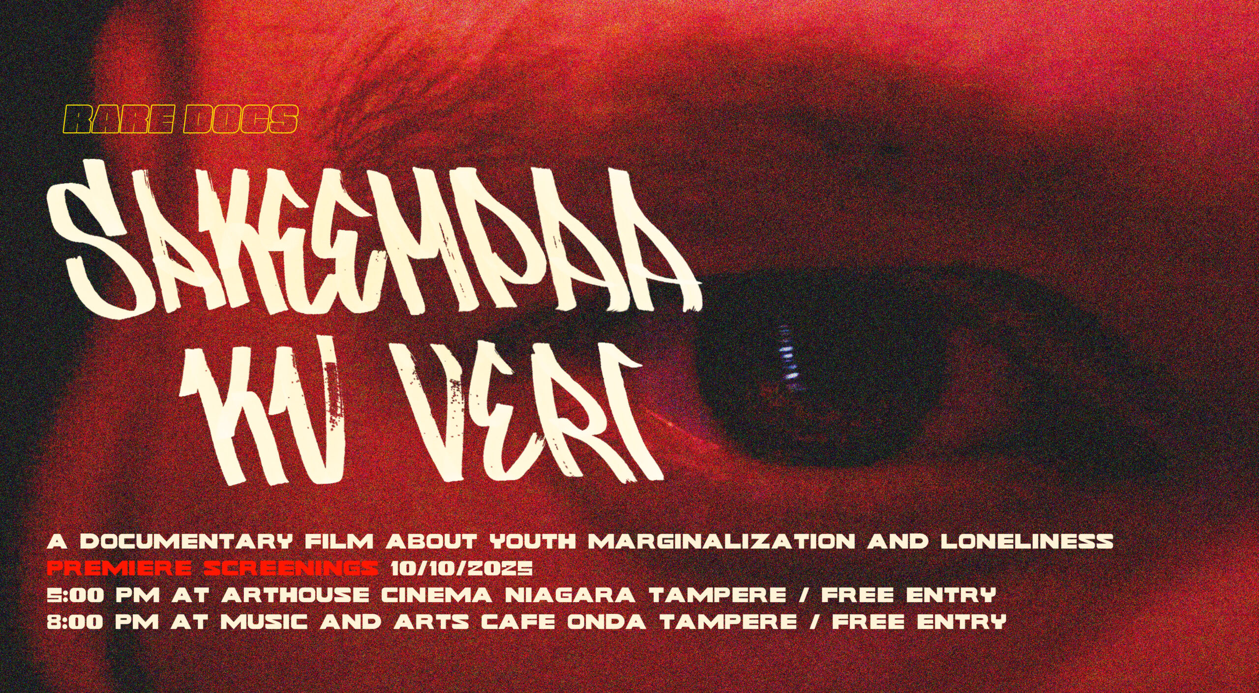 RARE DOCS: Sakeempaa ku veri on lyhytdokumenttielokuva, joka syventyy nuorten syrjäytymisen ja sosiaalisen vetäytymisen teemoihin nuorisotyöntekijöiden, tutkijoiden ja ennen kaikkea nuorten omilla äänillä. Elokuvassa katsojaa kuljettavat syrjäytymistä kokeneiden nuorten tarinat, laboratorioon eksyneet pienet animoidut rotanpoikaiset, sekä pysähtynyt kuvajournalistinen kerronta, joka nostaa esiin ulossulkemisen paikat yhteiskuntamme eri laidoilta. Elokuva rakentaa vuoropuhelun nuorten, tutkijoiden ja nuorten kanssa työskentelevien välille ja pakottaa katsojan tarkastelemaan yhteiskuntamme ulossulkevia rakenteita silmästä silmään. Elokuvan animaatioiden takana on palkittu ja menestyksekkäästä Maurice’s Bar -lyhytelokuvasta tunnettu animaattori Tzor Edery.
